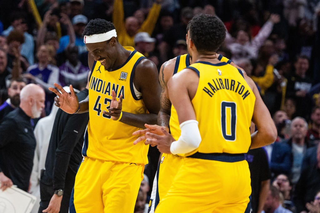 本场比赛,西亚卡姆出战32分钟,23投15中,三分5中3,罚球8中6,狂轰生涯新高的39分(此前最高分37分),外加4板3助1断;哈利伯顿在35分钟的时间里,投篮16中5,三分球10中3,罚球2中1,拿到14分8篮板11助攻2抢断的数据。