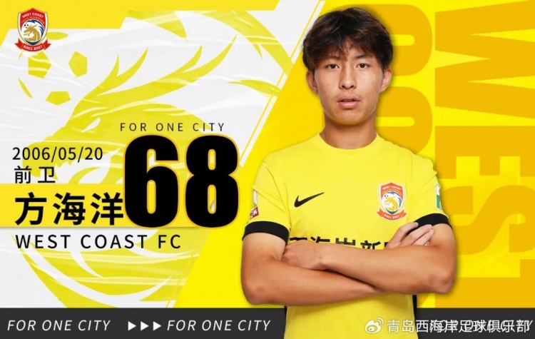 7月21日讯 今天,青岛西海岸官方宣布,U21梯队球员方海洋、戚秉宇、栾昊、鄢奇航正式升入一线队。球员具体信息如下: