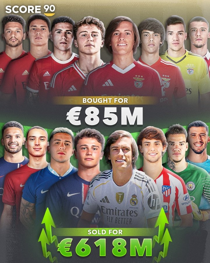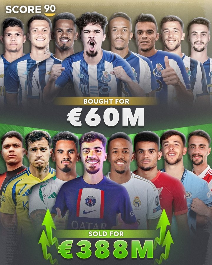 07月24日讯 英媒SCORE90统计了葡超三豪强的转会操作,列出了他们在队史转出售价较高的球员中,获得了多少利润。